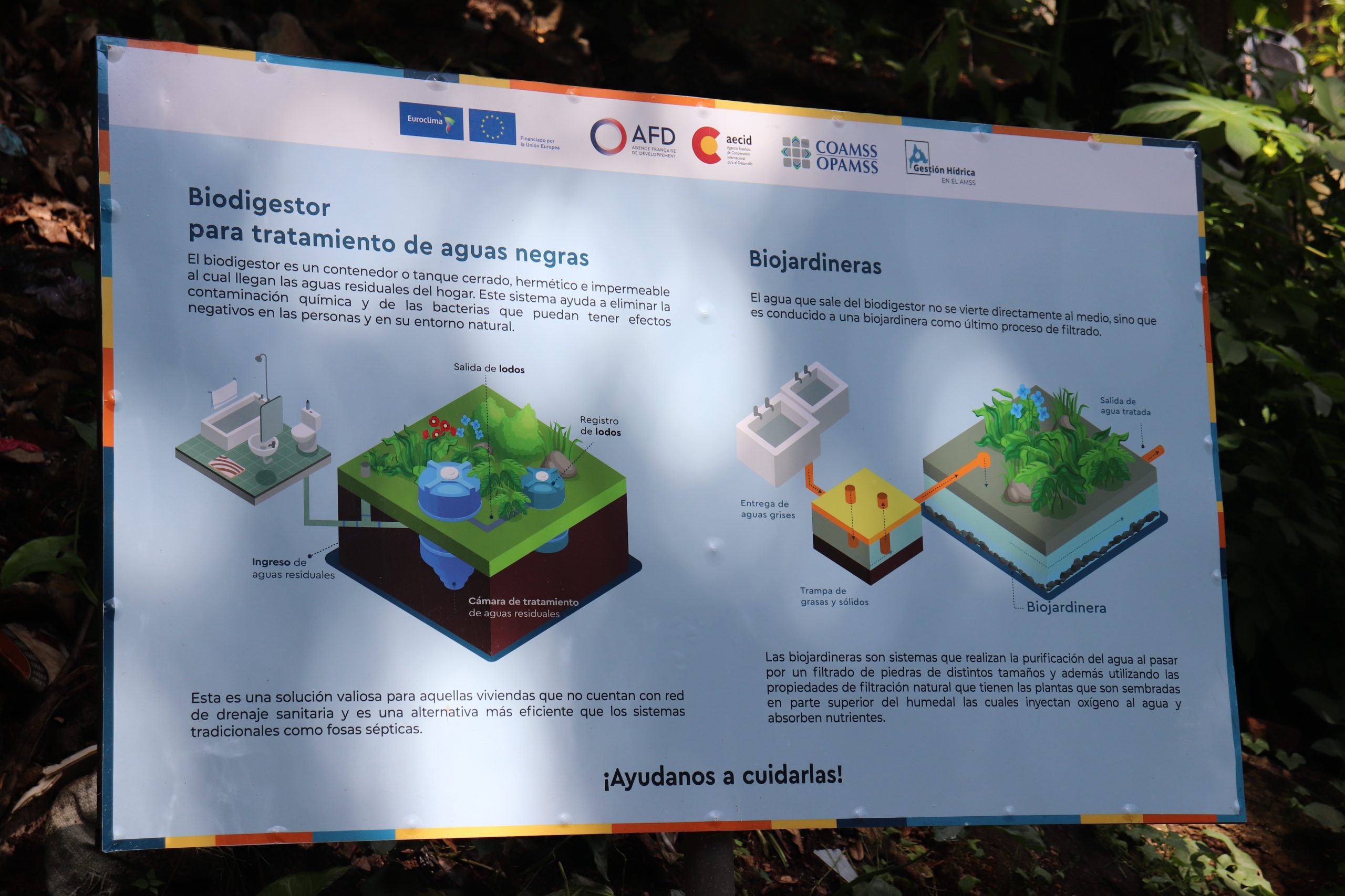 Las acciones de recuperación del manantial se han realizado en el marco de las obras piloto del proyecto “Incidiendo en Gestión de Ciclo Hidrológico con Enfoque en Aguas Subterráneas para la Adaptación al Cambio Climático en el Área Metropolitana de San Salvador-AMSS”; financiado por la Unión Europea, como parte del programa EUROCLIMA y a través de la Agencia Española de Cooperación Internacional para el Desarrollo – AECID.